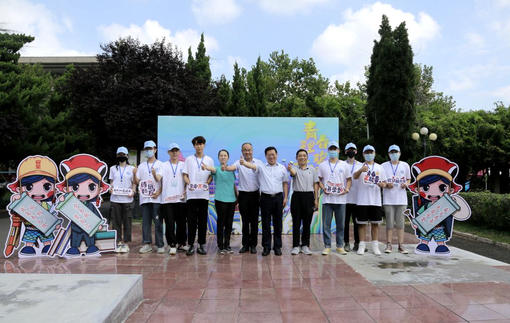 谭秀森一行还来到学生工作处、团委精心制作的校园拍照点,与身穿“乘风破浪”T恤、头戴“青小鲤”小蓝帽的学生志愿者交流、合影留念,并为艺术与设计学院学生设计的“青小鲤”迎新系列作品“点赞”。学生志愿者将印有“青小鲤”logo的钥匙扣赠与谭秀森一行,并表达了对学校和师生的祝福。