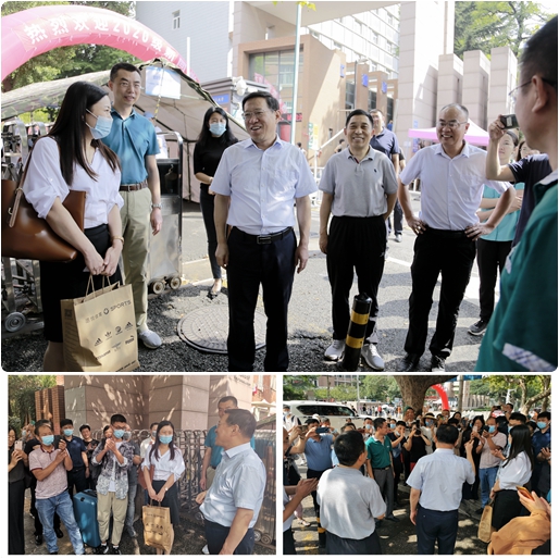 “家乡是哪里?”“刚到学校还适应吗?”“对学校的印象如何?”在学生公寓,谭秀森一行热心询问学生吃住习惯以及对学校的环境适应情况,对新生同学们提出殷切希望,鼓励大家尽快转变角色,认真做好规划,把握青春时光,志存高远、坚定信念,不懈奋斗、不负韶华。同时,要注意宿舍用电、外出交通和人身财产安全,强化安全意识和自我保护意识,遇到困难时要及时和辅导员、班主任、任课教师沟通交流,希望大家开启美好的大学时光,走好属于自己精彩的大学之路。
