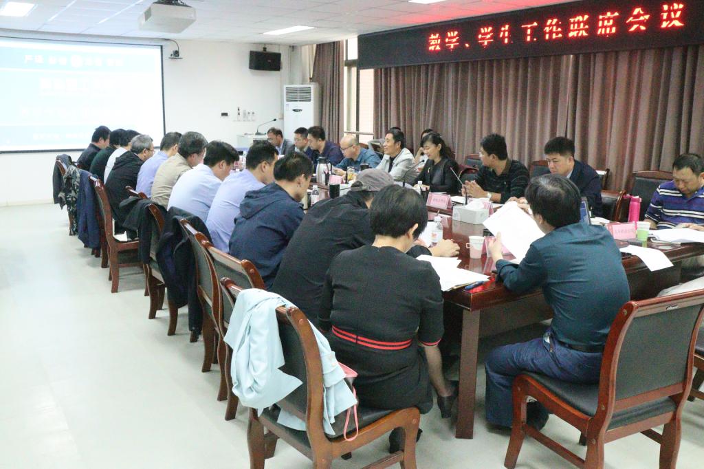 10月10日下午,学校教学、学生工作联席会议在嘉陵江路校区现代教育技术中心212会议室召开。党委常委、副校长王在泉、党委常委、副校长沈文青出席会议,教务处、学生工作处、团委、创新创业学院等部门负责人,各学院党总支副书记、教学院部副院长(主任)、教务处副处长、学生处副处长参加会议。会议由沈文青主持。