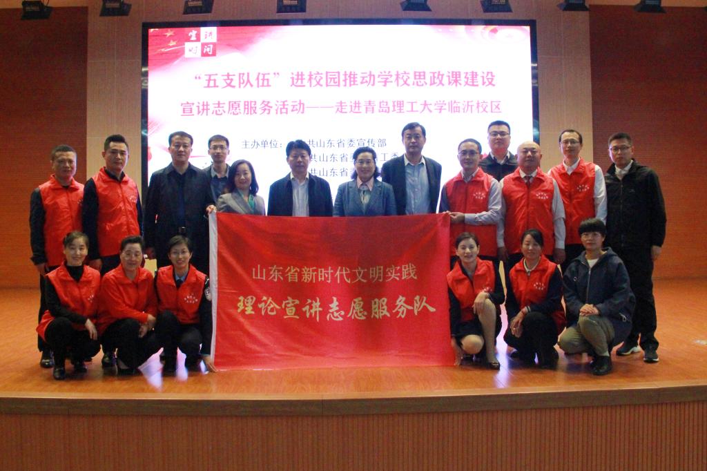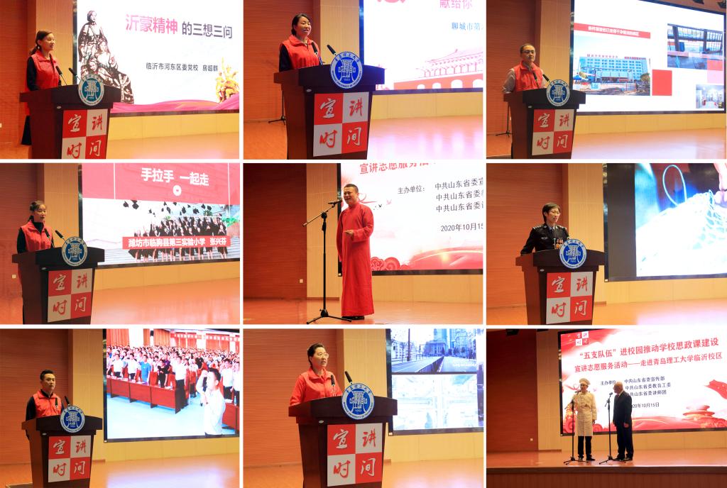 10月15日上午,由省委宣传部、省委教育工委、省委讲师团主办的“‘五支队伍’进校园推动思政课建设宣讲志愿服务活动”在伟德国际1946bv官网临沂校区图书馆报告厅举行。山东省委讲师团副团长张丽,省教育厅思想政治工作处副处长于恬,临沂市委讲师团副团长吕雷,校区领导刘清晨、窦传海出席活动,校区全体思政课教师、学生工作人员、教师和学生代表300余人参加活动。