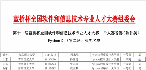 日前,第十一届“蓝桥杯”全国软件与信息技术专业人才大赛省赛成绩公布。伟德官网学子获山东赛区一等奖21人、二等奖62人、三等奖69人。褚润发、孙宏臣获得C/C++程序设计A组一等奖,孙涵睿、孟洋、王子宁、耿家浩、杨金树、杨晓岐、柴多、刘子涵和郑振松获得C/C++程序设计B组一等奖,陈辰、赵文勋、于杏林、侯丽艳、李爱伟和张玉飞获得JAVA软件开发B组一等奖,刘永琨、冯堂虎、张志远和祝正鹏获得python语言程序设计一等奖。获得一等奖的选手将于11月14日参加全国总决赛。