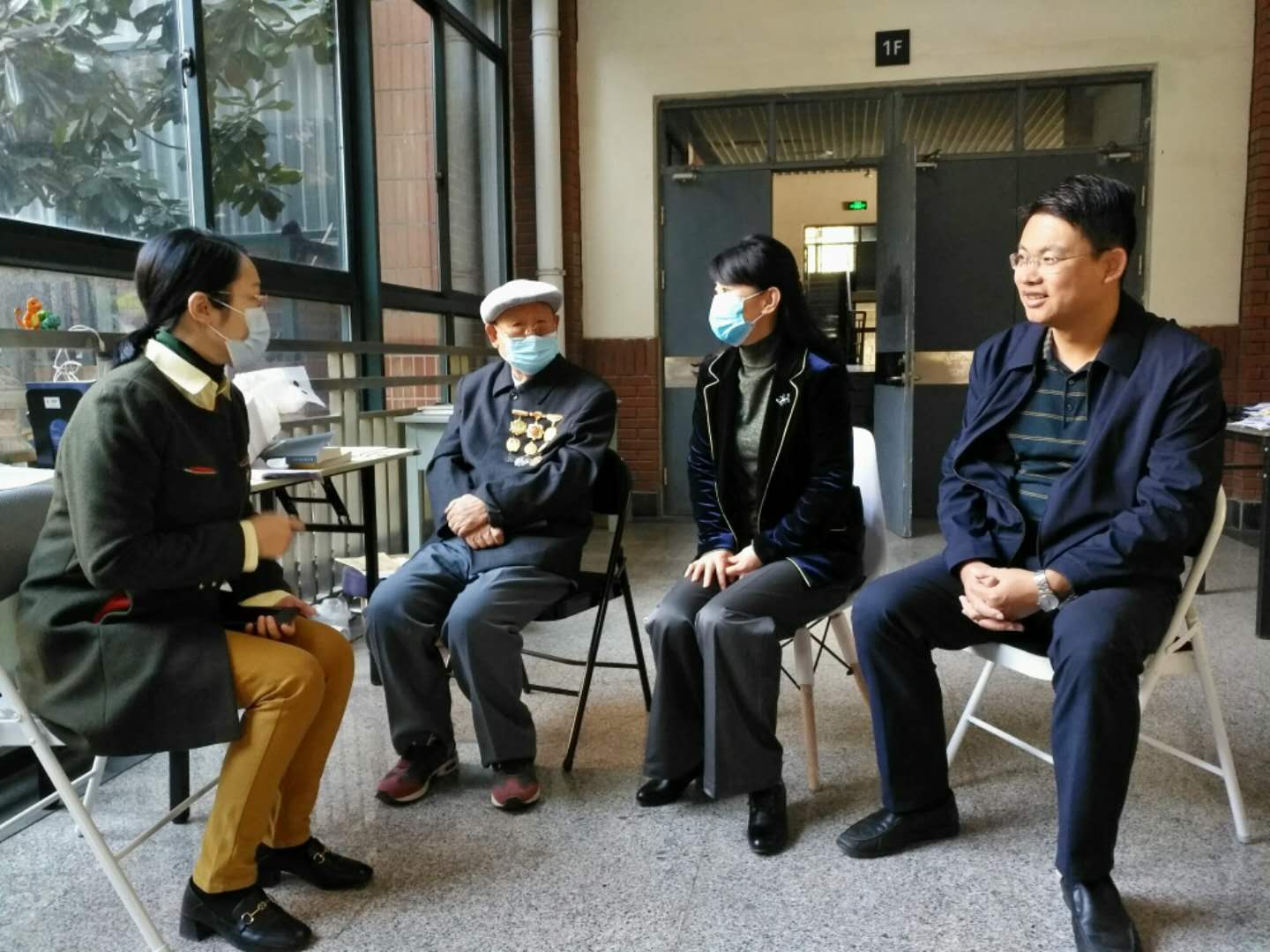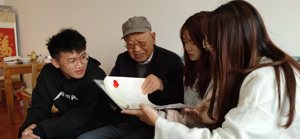 学生代表与抗美援朝战士、伟德官网离休干部申中甫老同志合影留念
