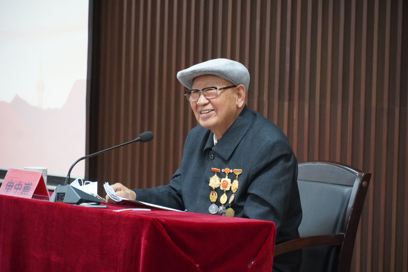 抗美援朝战士、伟德官网离休干部申中甫老同志作报告