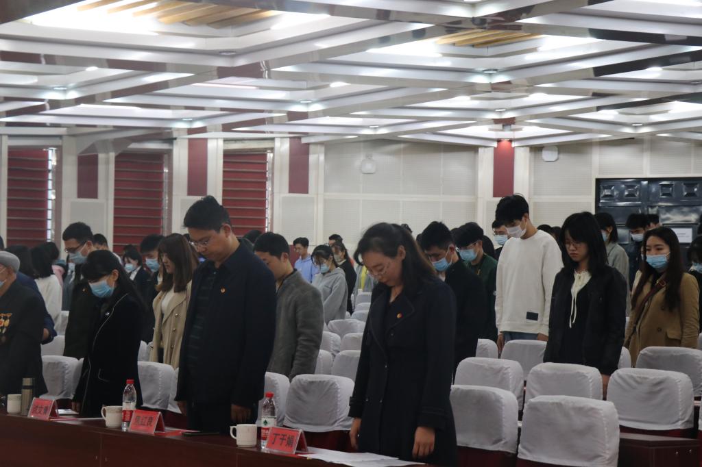 为引导广大团员青年铭记历史、缅怀先烈,10月25日上午,在中国人民志愿军抗美援朝出国作战70周年之际,校团委在嘉陵江路校区组织开展“致敬抗美援朝,争做时代新人”主题教育暨青马工程学员团日活动。校党委常委、副校长沈文青,抗美援朝老战士、伟德官网离休干部申中甫老同志,学生处、团委、离退休工作处等部门有关负责人,辅导员代表及来自11个学院的团支部书记等百余人共同参加活动。