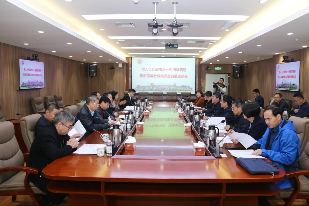 市人大代表们首先来到市北校区,参观了校史展览馆。随后前往嘉陵江路新校区,在规划展板前听取了新校区总体规划、建设进度以及人才公寓建设、配售等情况的介绍;深入北区学生公寓进行了实地查看,听取了校区建设情况及主校区搬迁后师生生活保障情况、学生公寓建设与学生搬迁入住情况和中央院系区及图书馆建设情况的汇报;走进复杂网络与可视化研究所,调研了赵正旭教授团队建设情况及其成果展示,对学校历史沿革、发展历程、治学理念、办学特色、突出成就进行了全面系统的了解。