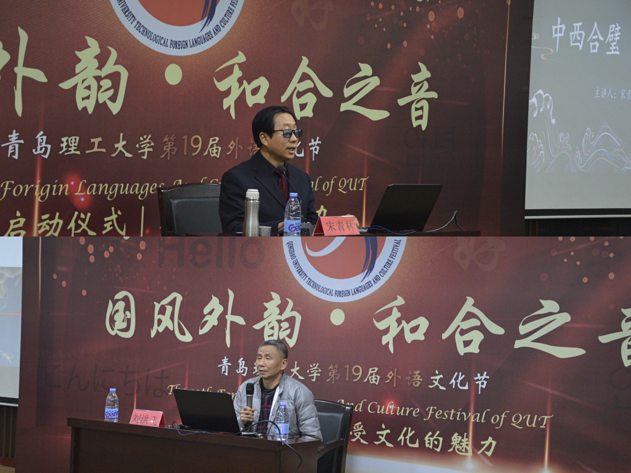 宋青林与刘洪飞两位老师的中外文化主题讲座,带领学生重识中国传统文化的丰富内涵和国际影响地位,领略异域文化别样的风采,感受中外对比下的多元文化世界。他们指出聚是一团火、散是满天星,中外文化应共同融合发展,才能使世界文化宝库熠熠生辉。
