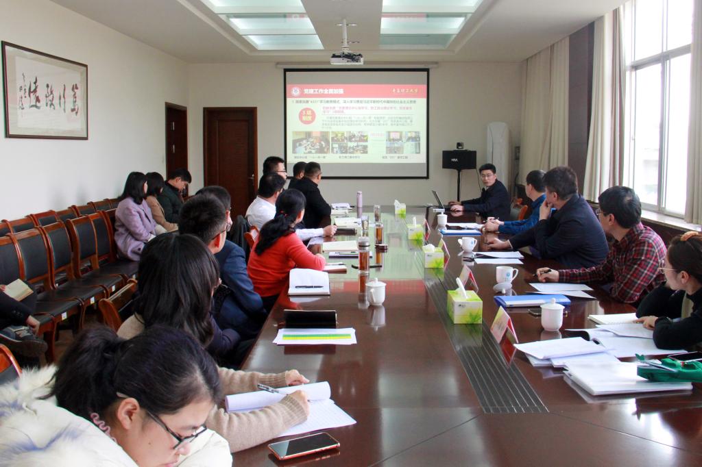 在办公楼202会议室,临沂校区党委常务副书记李国涛对临沂校区2020年度党建主体责任及意识形态工作完成情况向督导组进行了汇报。