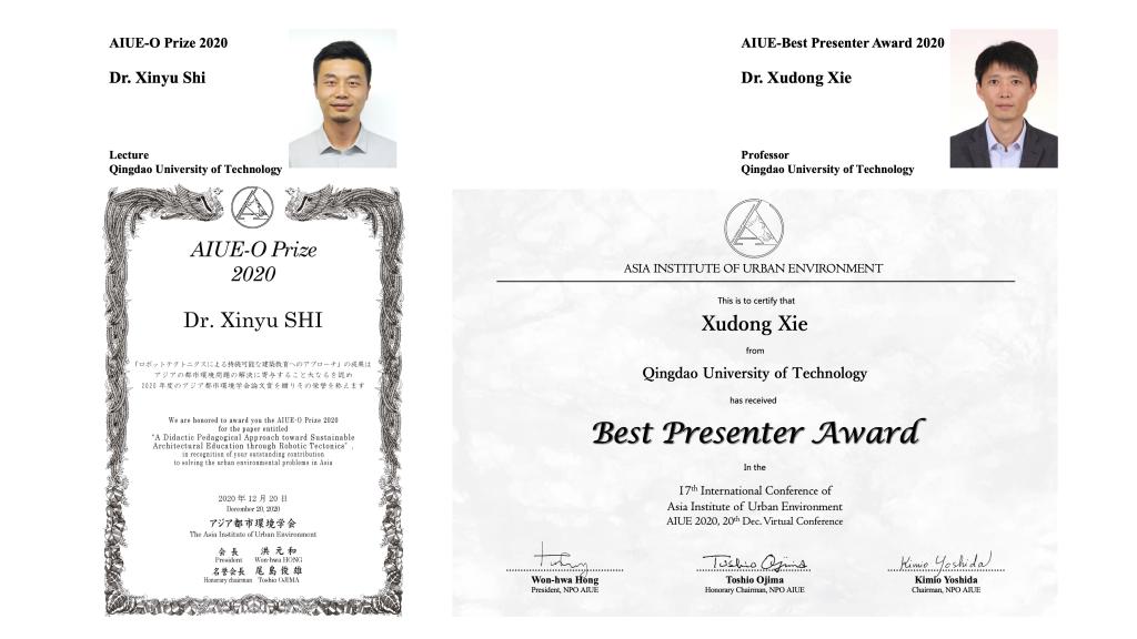 会上,亚洲城市环境学会公布了2020年学术论文奖,来自中国、日本和韩国的三名学者获奖。伟德官网建筑与城乡规划学院石新羽老师以“A Didactic Pedagogical Approach toward Sustainable Architectural Education through Robotic Tectonics(通过机器人建构学实现可持续建筑教育的教学方法研究)”的成就荣获此奖项,并在主会场发表了基调演讲。随后,百名学者参与了各分会场的发表交流,论文均被出版收录至同名国际期刊《Journal Asia Urban Environment》。
