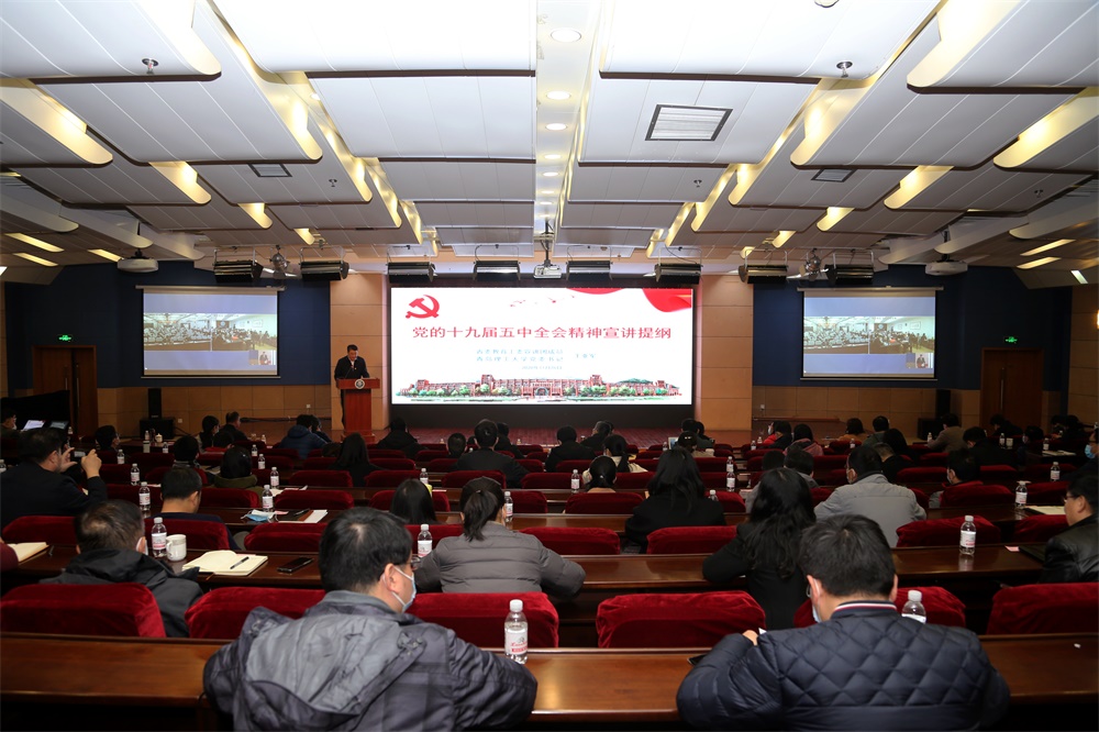 10月30日上午,学校党委理论学习中心组召开专题会议,集体学习党的十九届五中全会精神;11月26日上午,学校举行党的十九届五中全会精神宣讲会,省委教育工委宣讲团成员、校党委书记王亚军作宣讲报告,校长谭秀森等学校领导班子成员先后深入联系学院、部门开展专题宣讲;12月2日,学校举行深入学习贯彻党的十九届五中全会精神主题团课暨团员青年学习《习近平与大学生朋友们》启动仪式。