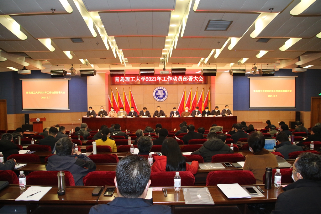 3月7日上午,学校2021年工作动员部署大会在市北校区学术报告厅召开。校党委书记王亚军主持会议,党委副书记、校长谭秀森部署2021年工作。学校领导班子成员、校学术委员会主任、全体正处级干部参加会议。