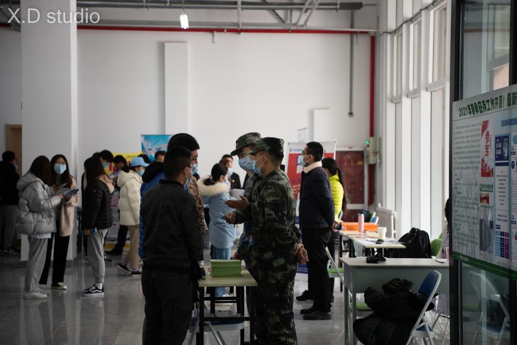 坚毅的目光,标准的站姿,热情的讲解,招聘会上的橄榄绿形成了一道靓丽的风景线。由伟德官网退役大学生组织的校园征兵宣传摊位前,前来咨询的毕业生络绎不绝,他们用自身的军营体验,吸引着更多的学生携笔从戎,献身国防建功立业。