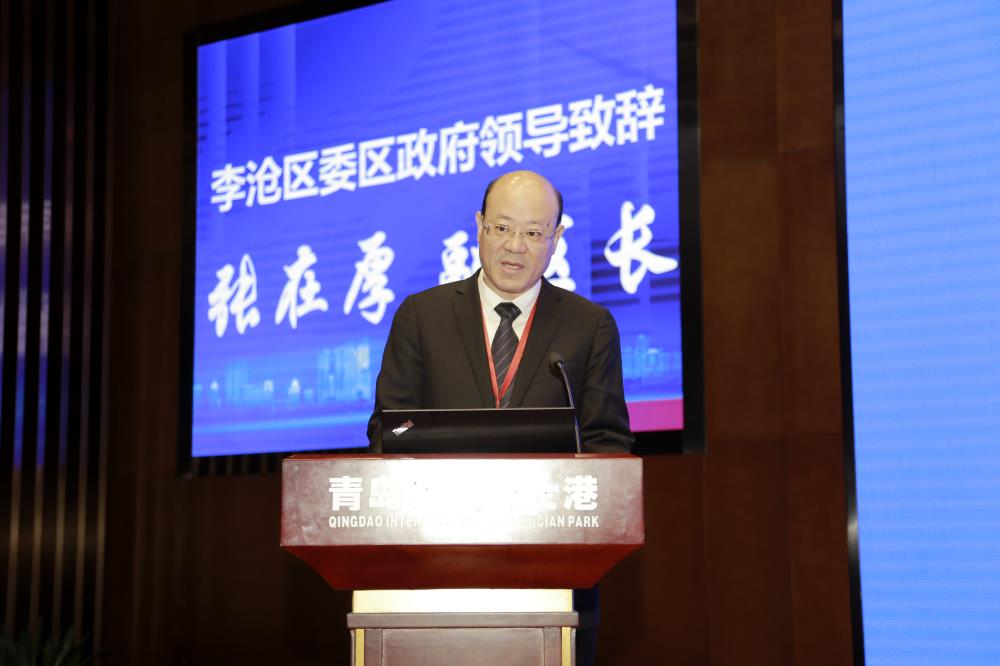 随后,青岛市李沧区委副区长张在厚在大会致辞,并简要介绍了李沧区特别是院士港的发展现状。
