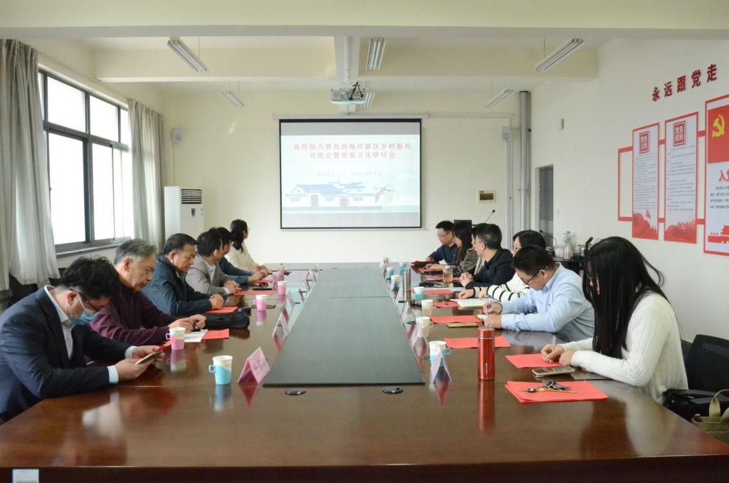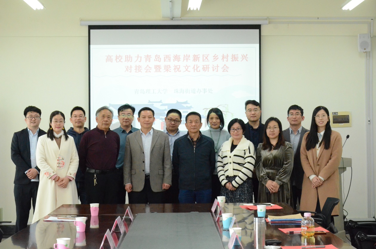 青岛市影视文化研究会党支部书记谭业庭、会长周汝萍,青岛西海岸新区珠海街道党工委副书记、乡村振兴工作队队长李锡军,青岛西海岸新区文化馆研究馆员、文博专家李居发,青岛源诚控股发展集团有限公司副总经理李兆勇,青岛西海岸新区珠海街道精神文明建设办公室逄铭涛,青岛西海岸新区晓宁公益服务社贺颖颖等各界人士与会。人文与外国语学院党总支副书记王振,民俗文化研究中心主任张成福,社会工作系主任刘世颖,学院教师左志军、苗德全、王砚文等参加会议,人文与外国语学院副院长莫玉梅主持会议。