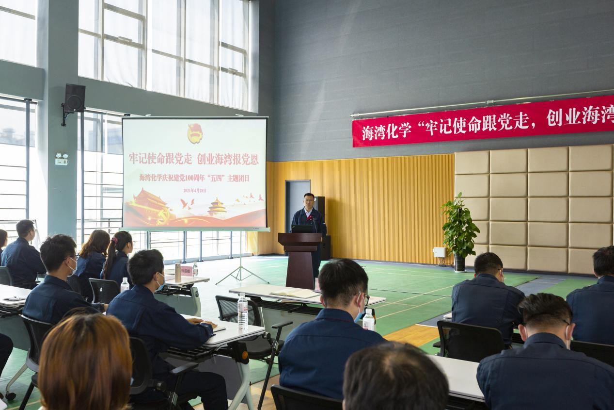 海湾化学副总经理、安全总监苗春葆就弘扬五四精神对青年职工提出要求,希望广大青年团员坚定理想信念,强化自我提升,勇于攻坚克难,立足本职,奋发图强,为企业高质量发展贡献力量。