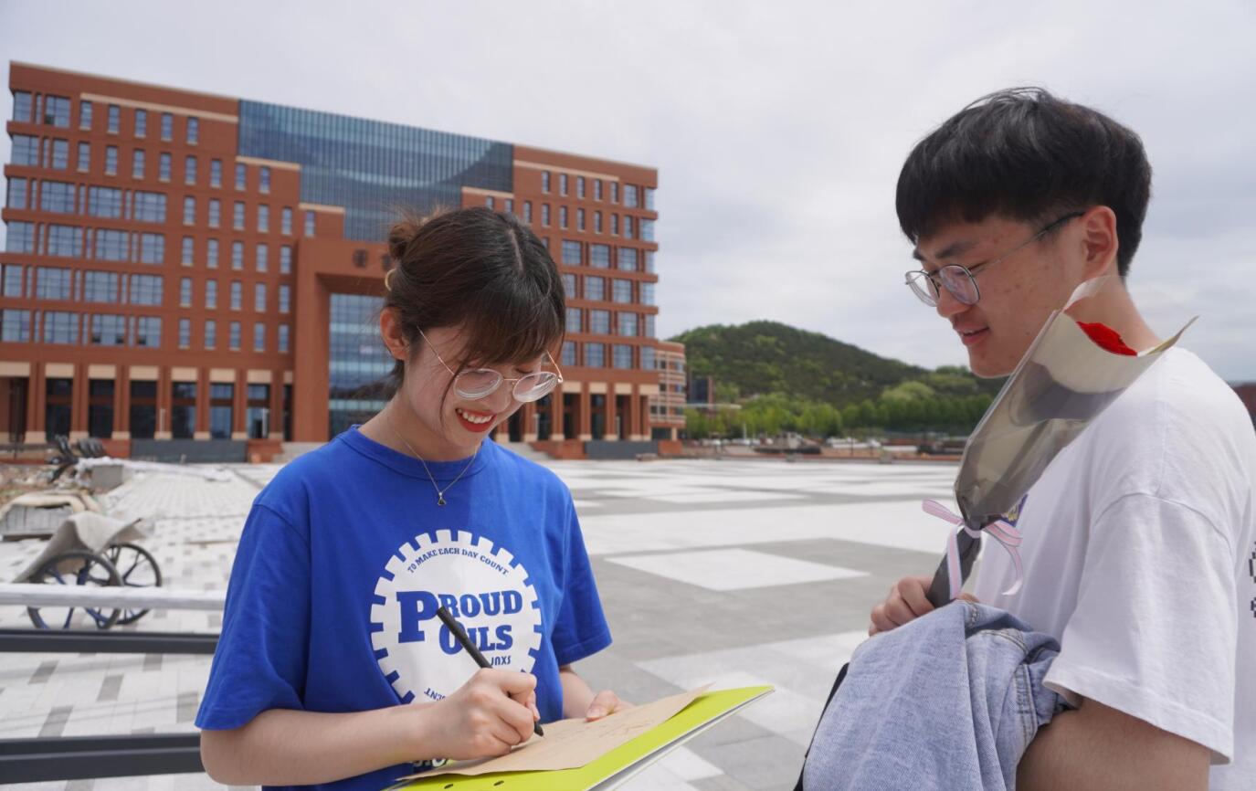 大学的爱情既有纯真,也不乏责任,他们接受着来自老师、父母、社会的善意和祝福,带着对他或她的情谊,一同经营这段宝贵的感情。在5.20这个特殊的日子里,几对毕业生小情侣走在校园里,回忆起过去与对方经历的点点滴滴,写下对未来生活的期许和向往装进许愿瓶并埋在校园某个角落,在图书馆前留影,纪念他们的美好回忆。