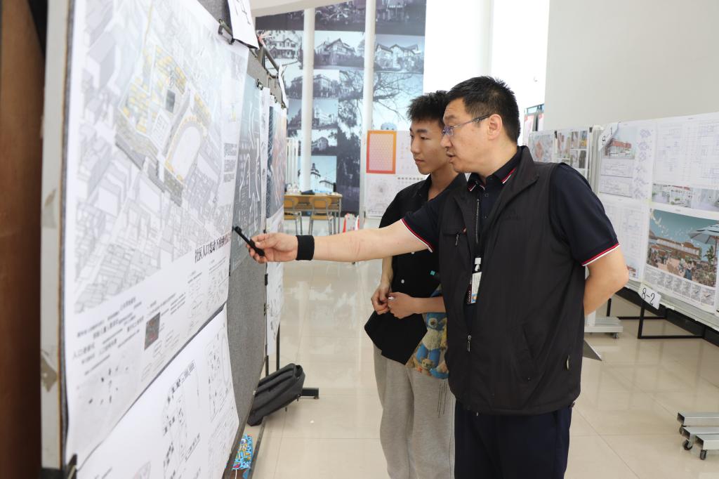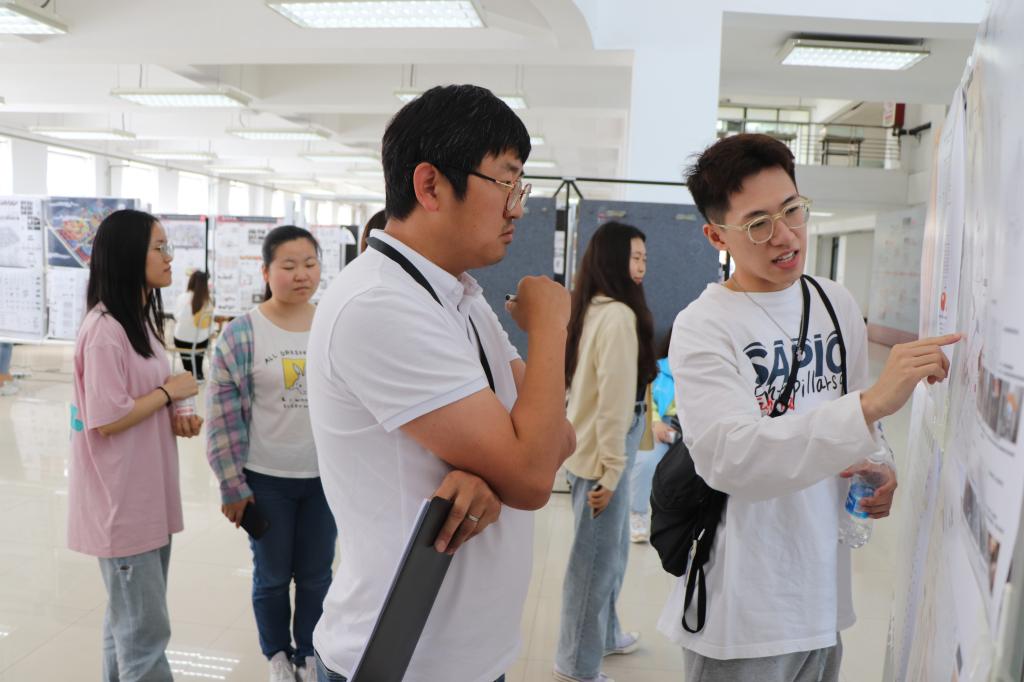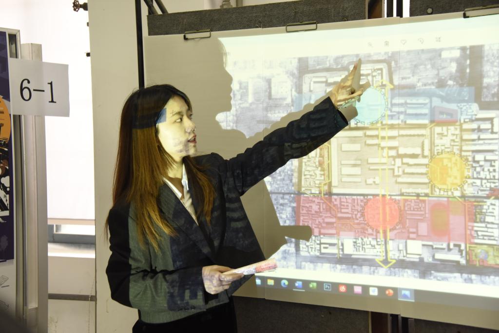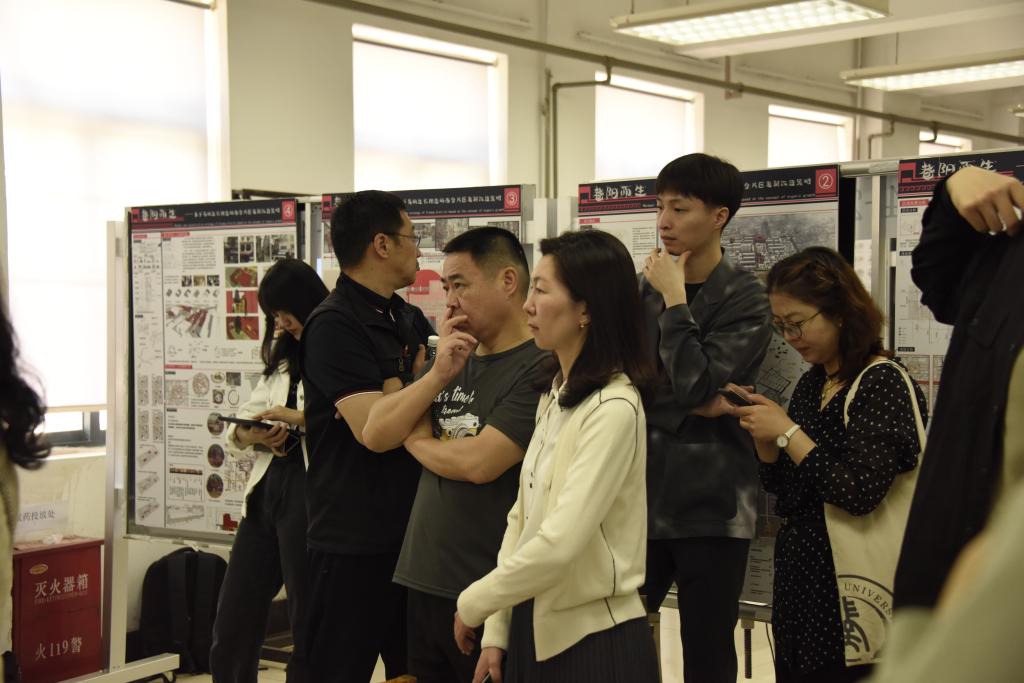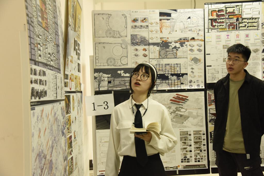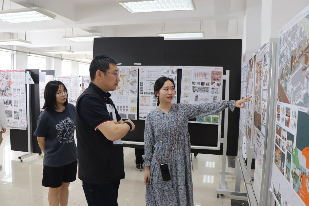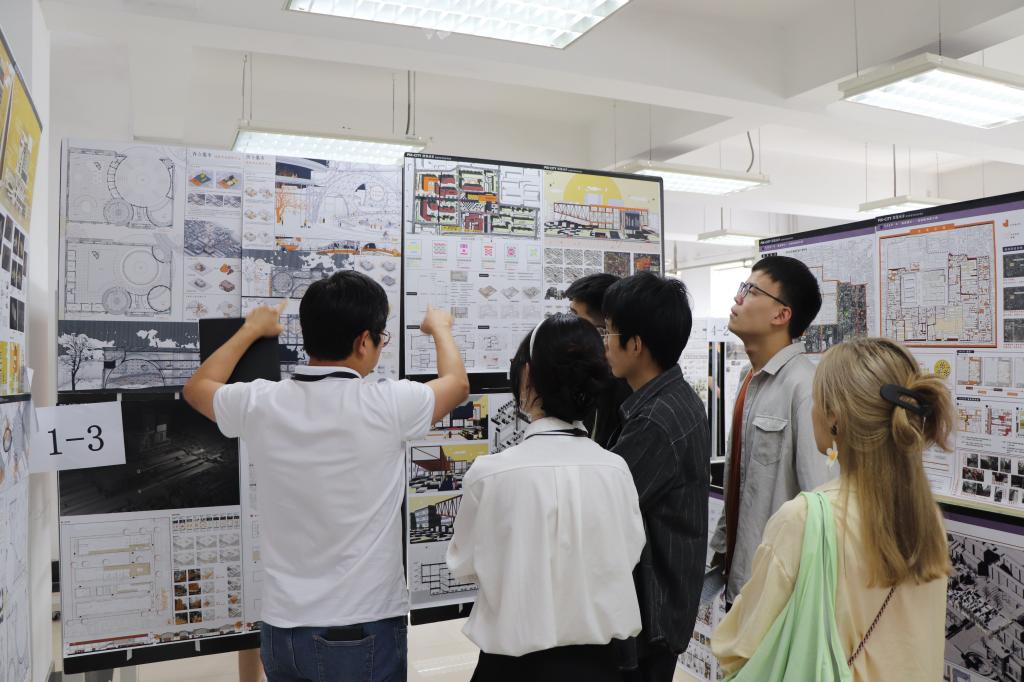 展评现场,来自四所高校的毕业生相互学习交流专业经验,现场燃起浓郁的学术氛围。同学们的设计作品结合专业、立足实际,选题注重实用性、兼顾创新性,将设计主题展现得淋漓尽致。活动现场展位以方案规划设计小组为单位,共分8组展位。评展过程中,各校指导教师对毕业设计作品进行参观、浏览,学生通过视频、PPT展示、图纸展示等方式,全方位地对建筑设计的理念及内容集中展示。整个过程充分展现出学生们的专业素养与应变能力。与会老师对同学们的设计给予了高度肯定,同时提出了存在的问题及解决建议。公开答辩现场组织井然有序,答辩及参展同学都受益匪浅。