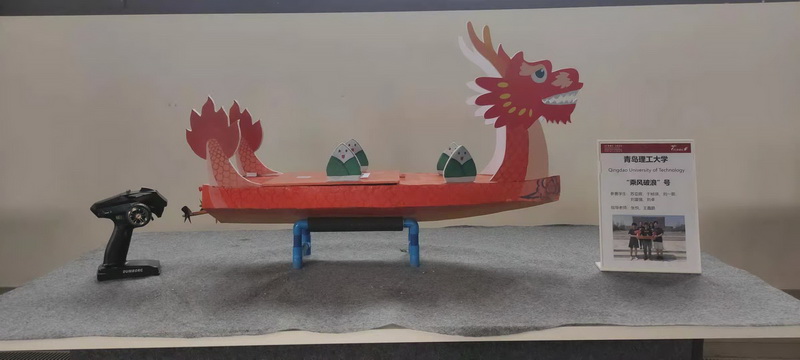 “乘风破浪”号采用3D打印技术制作模具,使用轻质超高性能混凝土(LWUHPC)浇筑完成,加以美化,装饰龙头龙尾,描绘龙鳞,精致的外观设计吸引了诸多高校老师和学生的围观赞美,展现了伟德官网学生的创新实践能力。
