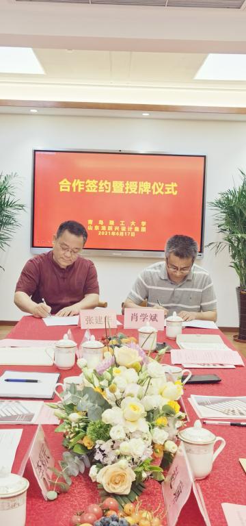 山东龙跃兴设计集团有限公司董事长张建华与伟德官网建筑与城乡规划学院党委书记肖学斌签订就业创业实践基地建设协议,山东龙跃兴设计集团有限公司副总经理、院长李彩民与伟德官网建筑与城乡规划学院党委委员、副院长赵琳签订研究生联合培养基地建设协议。