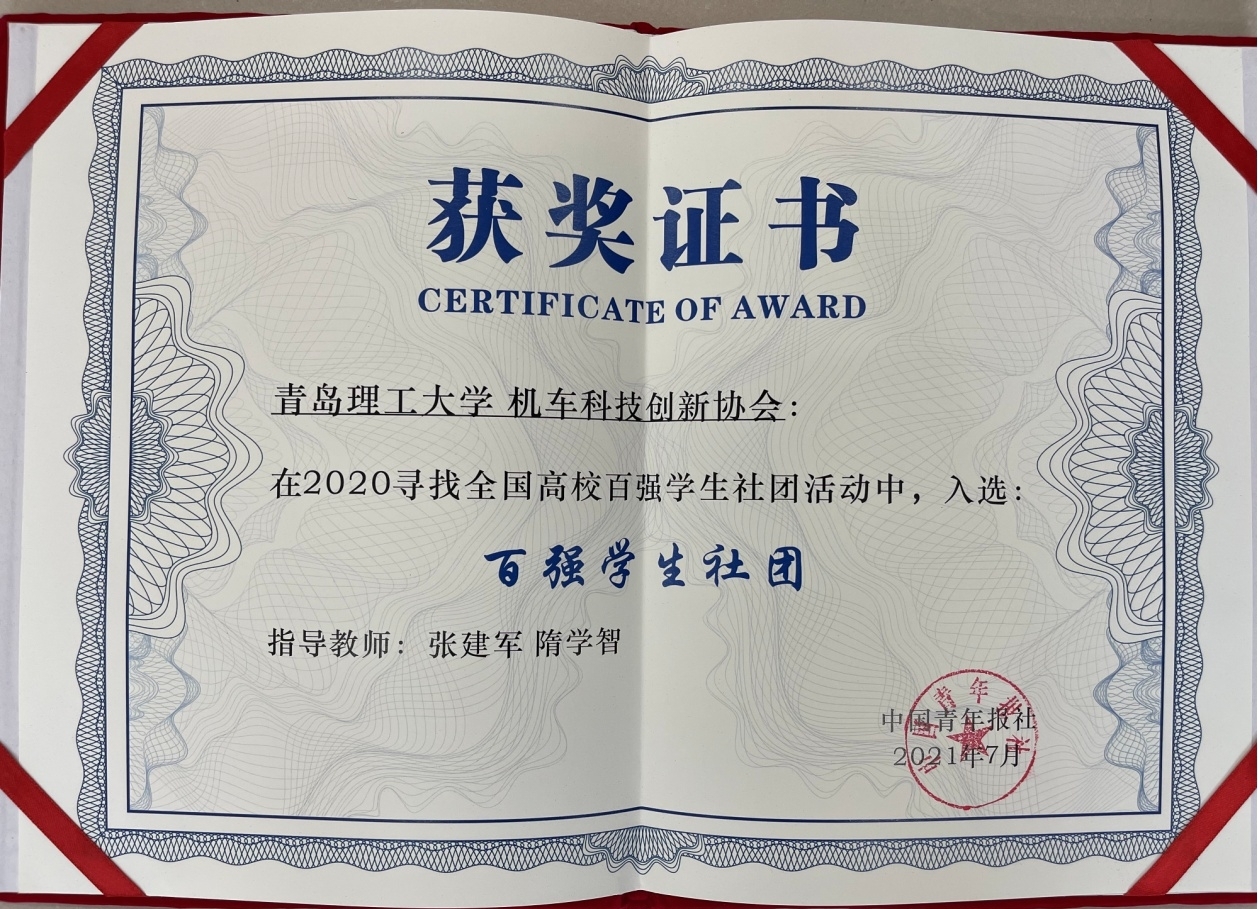 近日,由全国学联秘书处指导,中国青年报社主办的“2020寻找全国高校百强学生社团”活动评选结果揭晓,伟德官网机车科技创新协会经过高校推荐、社团展示、网络投票、技术筛查、专家评审等环节,从来自全国各地1014所高校的3871个学生社团中脱颖而出,入选“2020年全国高校百强学生社团”。