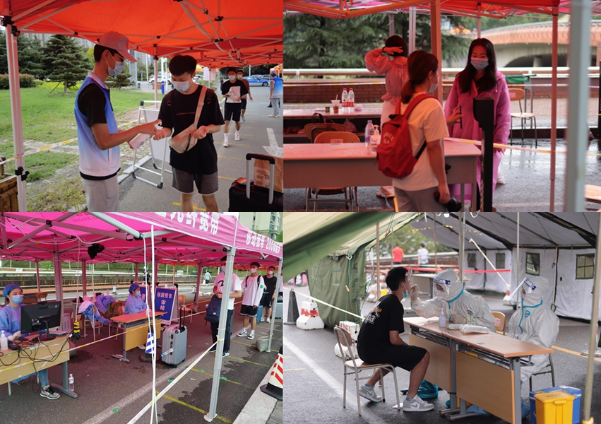 严密组织,无缝衔接。在工作人员的指引下,同学们佩戴口罩,保持间距,严格按照返校报到流程顺利完成报到手续。核验健康码、行李和手部消毒、红外线测体温、扫码登记、核酸检测、乘车返回……在学校各部门协同联动、有序组织下,报到环节环环相扣、无缝对接,报到现场秩序井然。