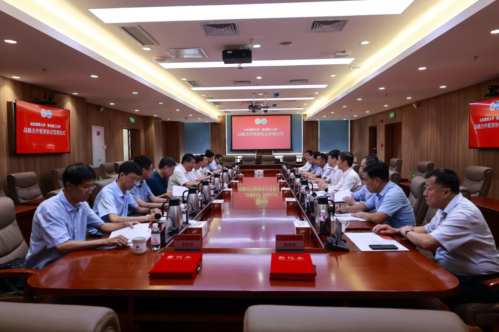 谭秀森介绍了学校基本情况。他表示,学校落实立德树人根本任务,秉承“百折不挠、刚毅厚重、勇承重载”的理工精神,坚持深化改革、创新发展,系统思维、协调发展,突出优势、特色发展,合作共赢、开放发展,共建共享、和谐发展,着力提高人才培养质量,积极对接、主动服务国家战略和区域经济社会发展,愿同山东建筑大学一道,扎实推进内涵式高质量发展,努力取得新的更大成绩。