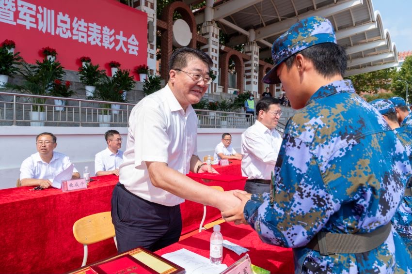 殷殷嘱托催奋进,不负期望谱新篇。党委常委、副校长沈文青、临沂校区党委副书记李国涛分别作军训总结讲话。他们代表学校向承担此次军训任务的学生教官、为军训辛勤工作的老师们表示诚挚的感谢,向圆满完成军训任务的同学们表示热烈的祝贺!他们对同学们提出三点希望:一要不惧艰难险阻,做一个品格坚毅的人。把军训中养成的坚毅的品格、强大的意志、优秀的习惯,以及学到的好思想、好作风、好传统带到今后的学习生活中,把军训这笔宝贵的精神财富运用到四年的大学学习生活甚至于今后的人生道路中。二要不负青春时光,做一个学识丰盈的人。要把学习作为首要任务,求真学问、练真本领,涵养品德、掌握知识,面向实际、深入实践,成长为腹有诗书、专业过硬的踏实求知者。三要不辱时代使命,做一个心怀大我的人。要坚守理工人薪火相传的使命担当,传扬理工人矢志不渝的奉献精神,彰显理工人苦干实干的蓬勃朝气,立大志、明大德、成大才、担大任,努力成为堪当民族复兴重任的时代新人,让青春在为祖国、为民族、为人民、为人类的不懈奋斗中绽放绚丽之花。