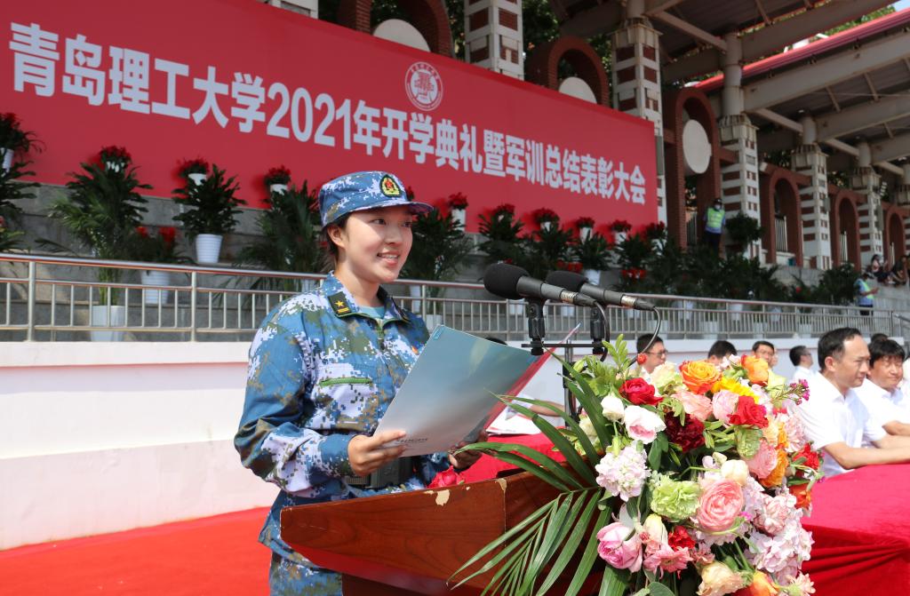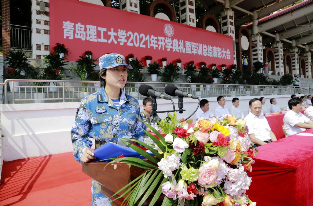 着迷彩戎装,展青春朝气。管理工程学院造价182班的姜欣作为军训学生教官代表发言,她表示作为学生教官希望通过示范作用给2021级新生带好头,帮助2021级新生系好大学生活的“第一粒扣子”。她希望同学们坚定理想信念,培育高尚品格,勇于创新创造,不负青春,不负韶华,在矢志奋斗中谱写新时代的青春之歌。