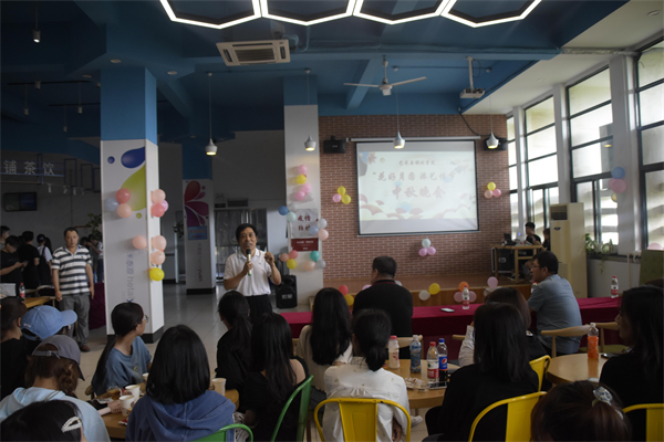 师生齐聚情意浓,欢声笑语度中秋。各学院不仅为同学们准备了月饼、瓜果、饮料,还精心准备了各具特色的晚会。晚会节目精彩十足,亮点纷呈,既有独唱、朗诵、相声、歌曲串烧,还有舞蹈、乐器演奏等;既有新生才艺展示,还有老师们的即兴表演;既有节目表演,还有游戏互动、有奖竞猜等。现场笑声不绝,欢呼声不断,其乐融融。