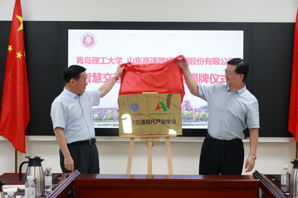 谭秀森与周新波代表校企双方共同为“智慧交通”现代产业学院揭牌。