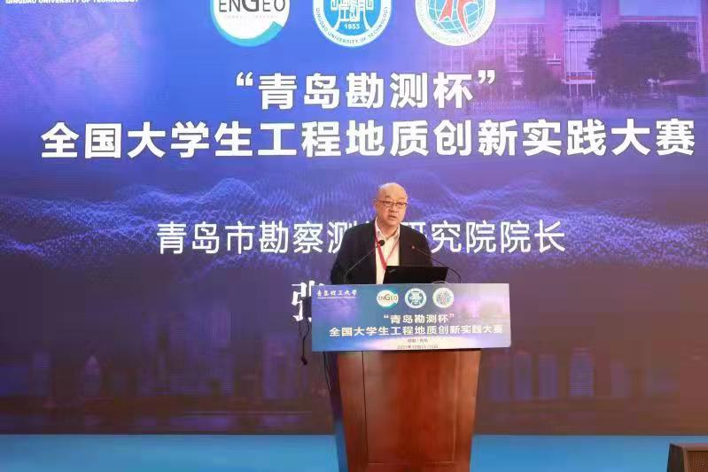 张志华介绍了青岛市勘察测绘研究院的基本情况和参与的重大工程建设项目,指出地质工程是年轻、充满活力的行业,勉励各位参赛同学奋发图强,勇担使命。