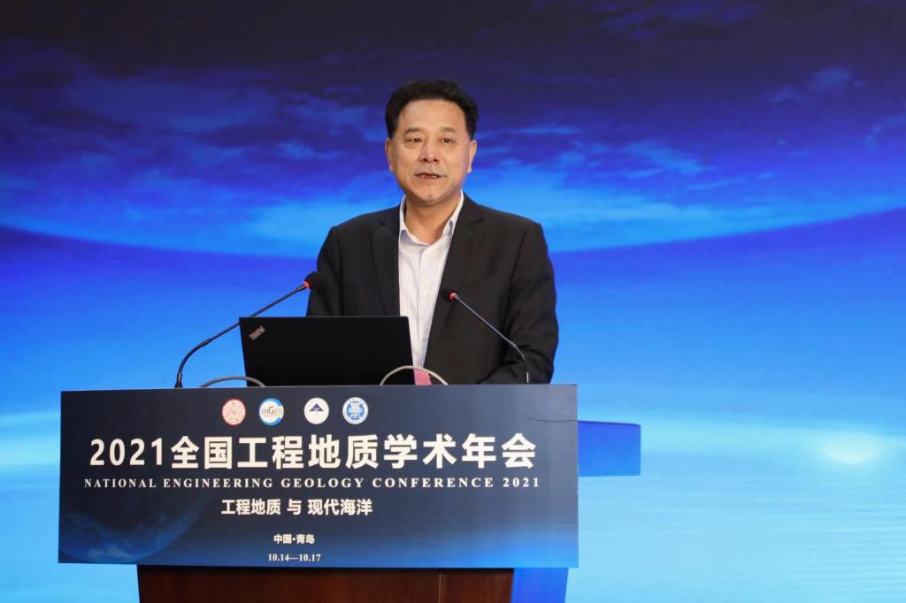 青岛市科学技术协会主席王建致辞,他向年会的主办表示热烈祝贺,向各位来宾表示诚挚的欢迎。王建主席表示,青岛市科协聚焦国家和地区科技发展需求,密切同院士、专家联系,在学术交流、科技服务、产业对接及成果转化等方面建立了长效合作机制,形成了产业、技术、资金、人才四链的发展格局,为青岛高质量发展提供有利保证。面对地质工程行业新的机遇与挑战,业内专家学者相聚青岛交流成果,相信大会必将在拓展思维视野、探索科学原理、攻克地质难题、推动成果转化、促进经济社会发展中起到重要作用。