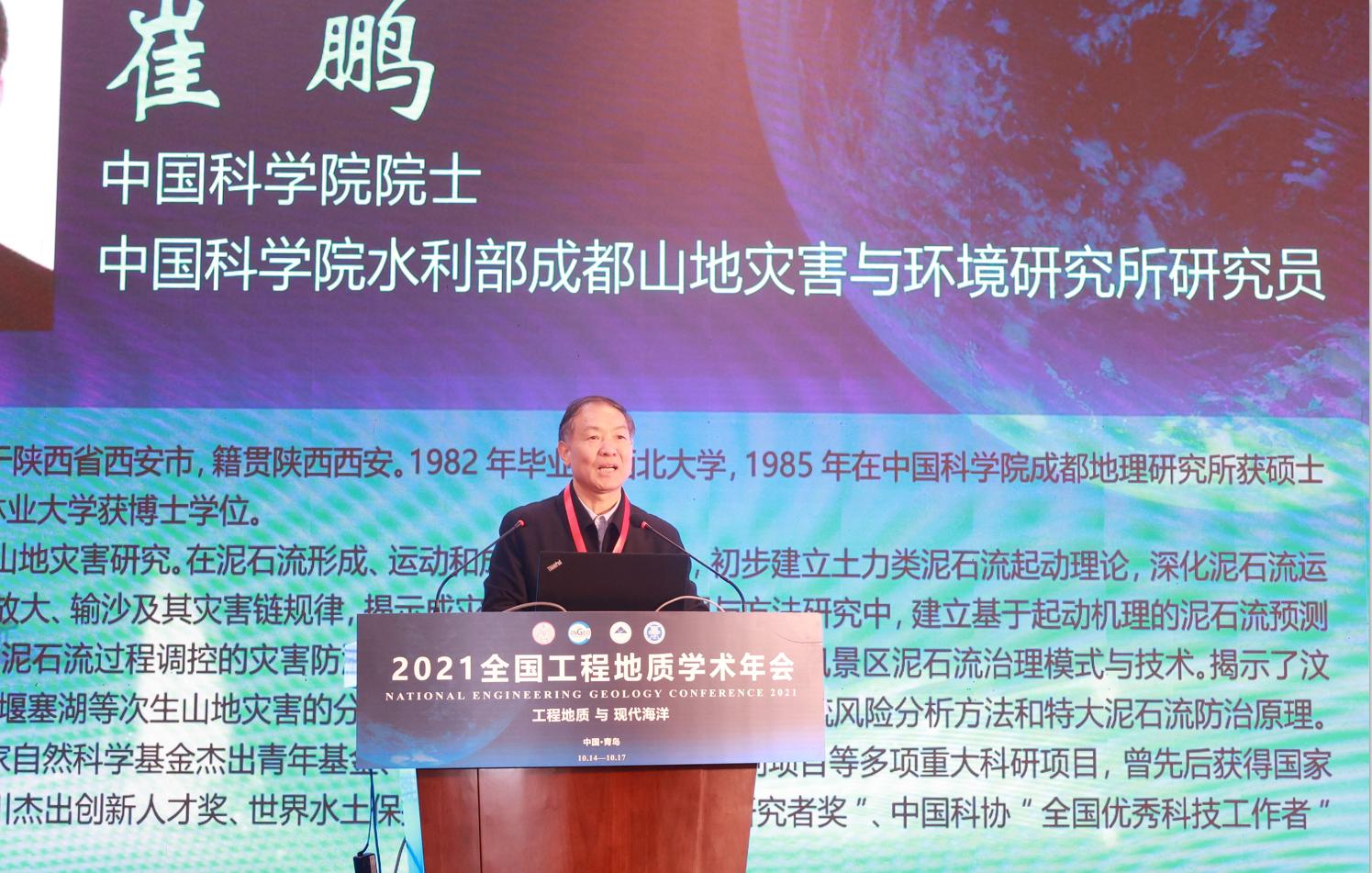 中国科学院院士崔鹏、何满潮、彭建兵,中国地质学会工程地质专委会主任委员、中国地质大学(武汉)党委副书记唐辉明,日本工程院院士、同济大学教授汪发武,青岛市科学技术协会主席王建,以及中国地质学会工程地质专委会各副主任委员出席会议。
