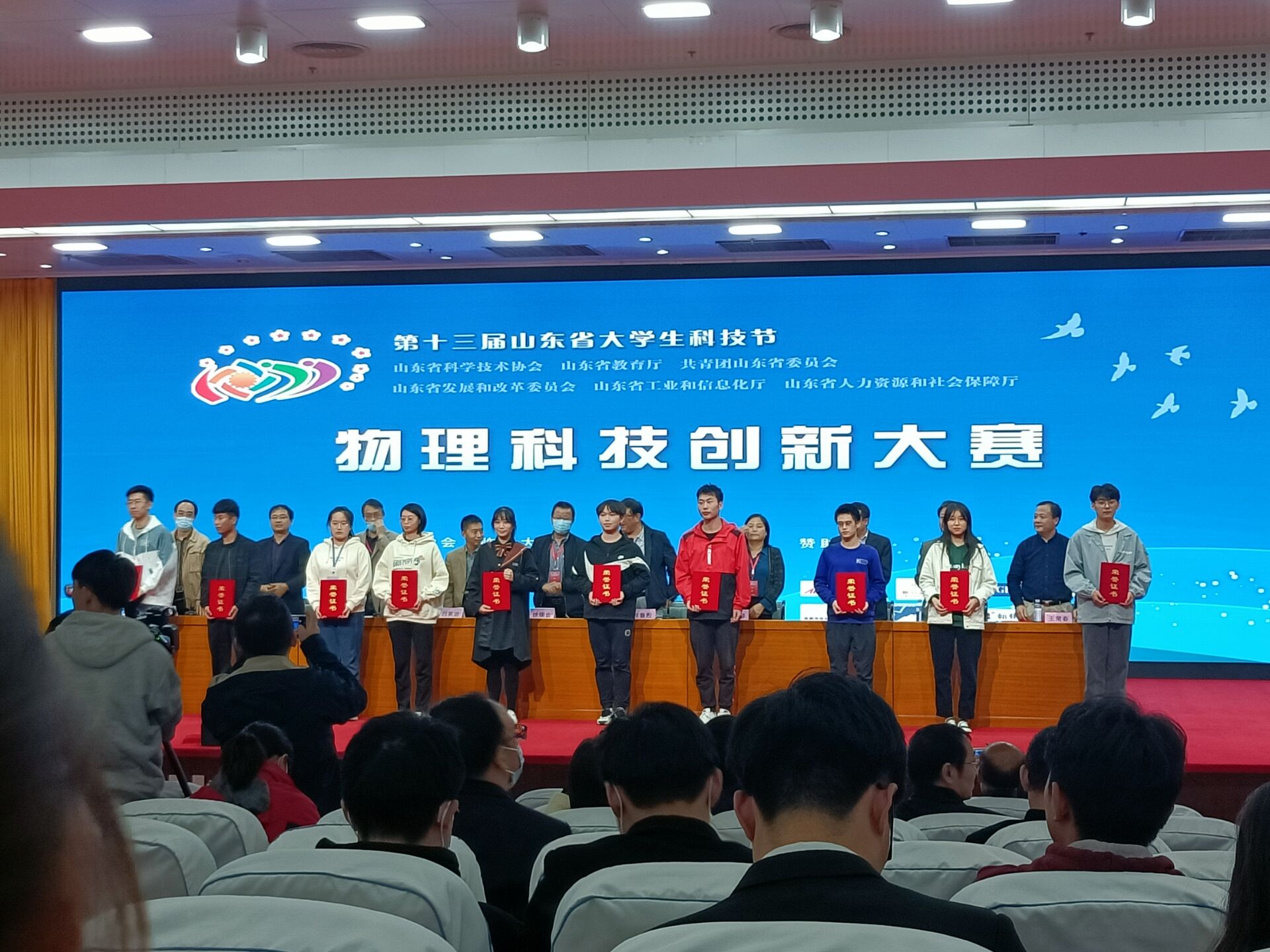 2021年10月15-17日,山东省第十三届大学生科技节物理科技创新大赛在临沂大学举办。本次大赛是由山东省教育厅、山东科学技术协会、山东物理学会等七部门共同主办、由临沂大学承办的大学生课外学术科技竞赛活动,是山东省大学生科技节的核心板块之一。伟德官网来自应用物理专业的学生组建了7支参赛队伍,取得了一等奖2个、二等奖3个、三等奖2个的优异成绩。