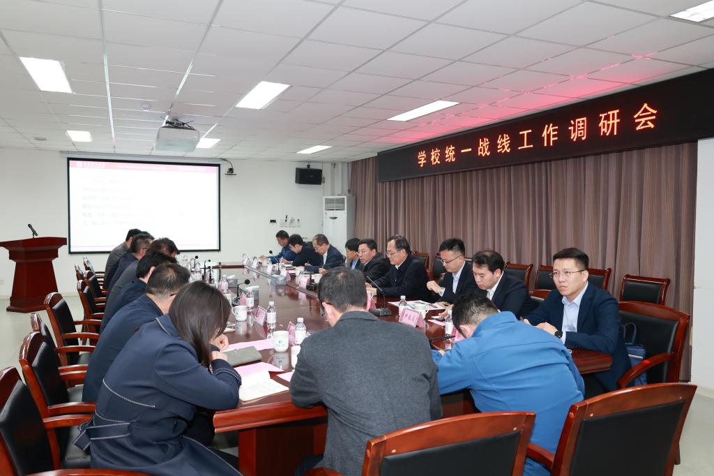 王亚军汇报了学校统战工作的基本情况、主要做法和存在问题及下步打算。学校党委在“双高”建设、内涵式高质量发展中,将统战工作与学校重点工作一体化谋划、一体化推进落实,努力做到党的中心工作推进到哪里,统一战线工作就跟进到哪里,智慧和力量就汇聚到哪里。下一步,学校党委将持续学习贯彻《条例》,不断改进创新工作方式方法,推动学校统战工作再上新台阶,为学校建设特色鲜明的高水平应用研究型大学凝聚人心、汇集力量。