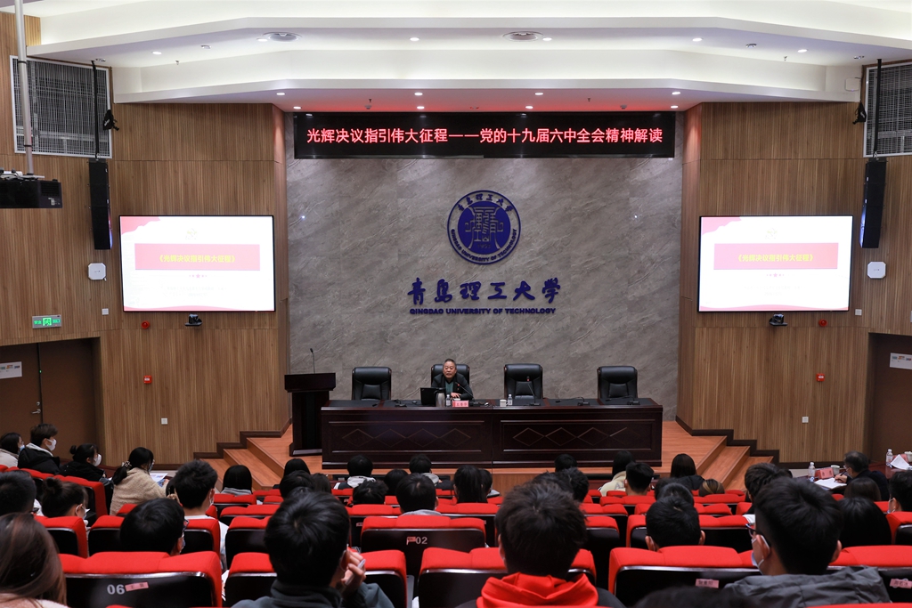 下午,巡回指导组列席旁听了十九届六中全会精神学习、宣传宣讲。学校宣讲队伍成员、马克思主义学院党总支书记王菁华做了《光辉决议指引伟大征程》主题宣讲。学校“青马工程”学员中近百位团支部书记聆听了宣讲。(撰稿:王明慧;摄影:杨健、王云霞;审核:王维)