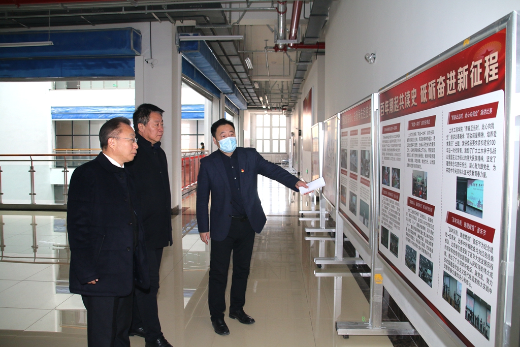 汇报会后,指导组一行实地考察了中央院系区东区考研学生自习室、校史馆、主题墙、教师风采展和“两优一先”展、教师服务中心、学生服务中心、荷园餐厅等,了解学校“我为群众办实事”实践活动项目完成情况;实地调研了土木工程学院、学生社团活动室,了解学校二级党委(党总支)和青年学生群体党史学习教育情况;实地走访了数字孪生实验室、绿色激光实验室等,了解学校“开新局”项目进展情况。