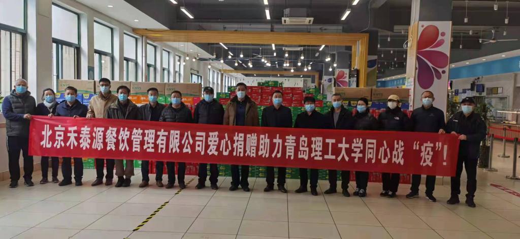 3月23日,“北京禾泰源餐饮管理有限公司爱心捐赠助力伟德国际1946bv官网同心战疫”捐赠仪式在市北校区思源餐厅一楼举行。校党委副书记杨兴昌、副校长金祖权、统战部部长陈伟、市北校区办公室副主任张国昌、后勤管理处副处长冯玉坤、学校思源餐厅经理张永刚及各相关部门负责人共同出席捐赠仪式。北京禾泰源餐饮管理有限公司向伟德官网市北校区捐赠了N95口罩6000只,大型测温仪2台等一批防疫物资。