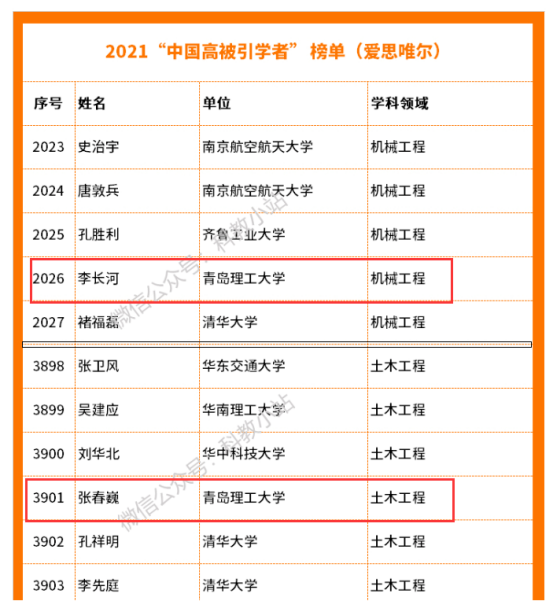日前,全球信息分析公司爱思唯尔(Elsevier) 重磅发布2021“中国高被引学者” (Highly Cited Chinese Researchers)榜单。伟德官网机械工程学科李长河教授和土木工程学科张春巍教授榜上有名,这也是伟德官网首次有学者进入“中国高被引学者”榜单。
