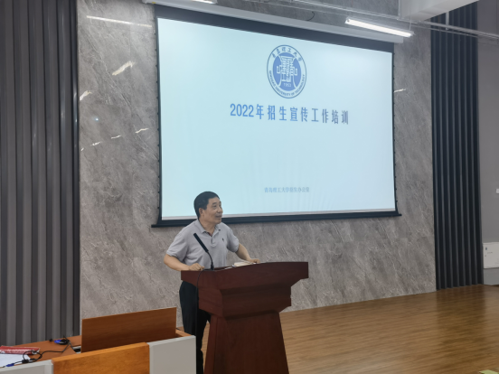 教务处副处长兼招生办公室主任李伟就今年线下咨询会各学院负责地市进行了说明,对招生宣传教师参加招生咨询会注意事项进行了介绍,并强调各学院招生宣传联络员、咨询会招生宣传员、咨询电话接听员要有爱校荣校意识、不断加强业务学习,以专业的素养、细心的服务、贴心的话语向考生和家长提供咨询服务,展现学校良好精神风貌。随后,招生办公室副主任历建刚结合学校2022年招生宣传工作手册,向参会人员进行了招生宣传工作业务培训。