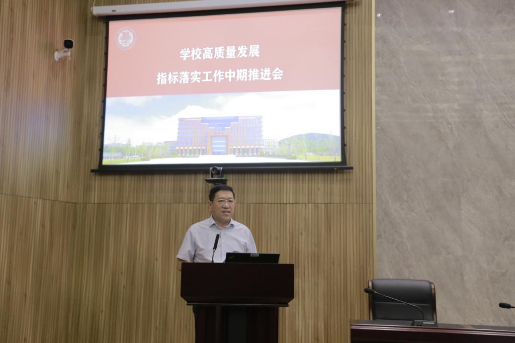 党委常委、副校长李长河作了题为《坚定目标明晰路径开创学校高质量发展新局面》的报告。李长河在报告中精准分析了学校高质量发展道路上的瓶颈与短板,进一步明确了学校内涵式高质量发展的目标和路径举措。他指出,全校各部门、单位要立足本单位职责,加强系统协同推进教育改革,创新工作机制,深入研究各项目评审规则与审核标准,超前谋划,有效集聚各方资源,以一往无前的奋斗姿态扛稳扛实责任,更加坚定信心、鼓足干劲,攻坚克难,全力推动学校高质量发展。