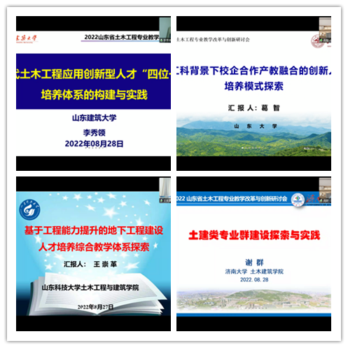 8月28日,山东省土木与水利类专业教学指导委员会举办“2022山东省土木工程专业教学改革与创新研讨会”,来自全省土木工程、水利工程、海洋工程等专业负责人、课程负责人、骨干教师等158人参加研讨会,会议由伟德国际1946bv官网和山东建筑大学承办,会议采取线上形式召开。山东省土木与水利类专业教学指导委员会主任委员、山东建筑大学校长于德湖教授,伟德国际1946bv官网副校长王在泉教授分别致辞。国家优青、伟德国际1946bv官网科技处处长、山东省土木与水利类专业教学指导委员会秘书长张鹏教授主持开幕式。