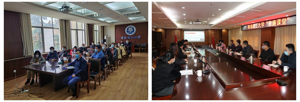 11月18日下午,学校“青廉课堂”第一讲在西海岸主校区报告厅开讲,纪委副书记冯英豪作了题为《正心明道、怀德自重,做崇廉尚洁、拒腐防变的好干部、好教师》的廉洁教育报告。报告会采用视频形式,市北校区和临沂校区设分会场,90余名年轻党员干部和50余名新入职青年教职工聆听了报告。报告会由机关党委书记、组织部副部长孙川三主持。