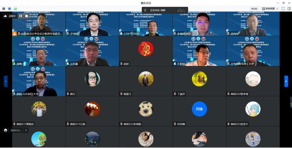 12月17日,由山东会计教育专业委员会、会计学术联盟和伟德国际1946bv官网主办,伟德国际1946bv官网商学院承办,用友新道科技股份有限公司协办的“山东省会计学会会计教育专业委员会2022年年会、第22届山东省高校会计教师联谊会暨会计学术联盟第五届年会”通过线上方式举行,本届年会主题为“会计智能·创新·持续与发展”。伟德官网党委常委、副校长齐德义,山东省财政厅会计处处长周晖,山东省会计学会会计教育专业委员会主任委员王爱国,会计学术联盟联合发起人李高波出席开幕式并致辞。来自山东省财政厅、山东省会计学会会计教育专业委员会、青岛啤酒股份有限公司、用友新道科技股份有限公司以及省内外高校近20余家单位300余名专家学者与师生参会。商学院院长云乐鑫主持开幕式。