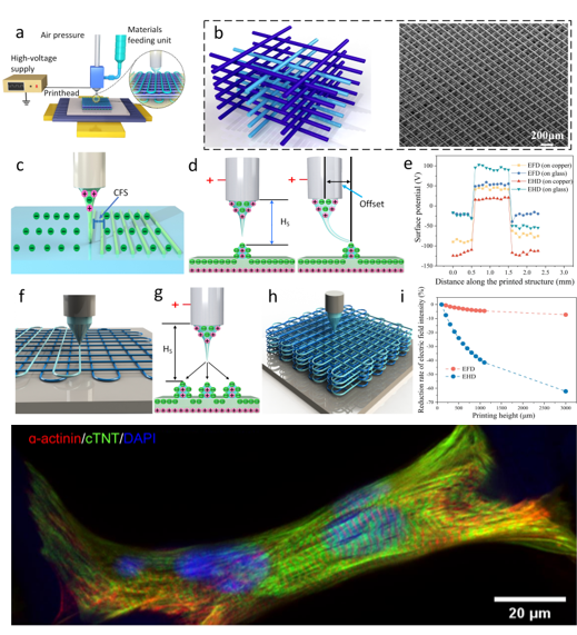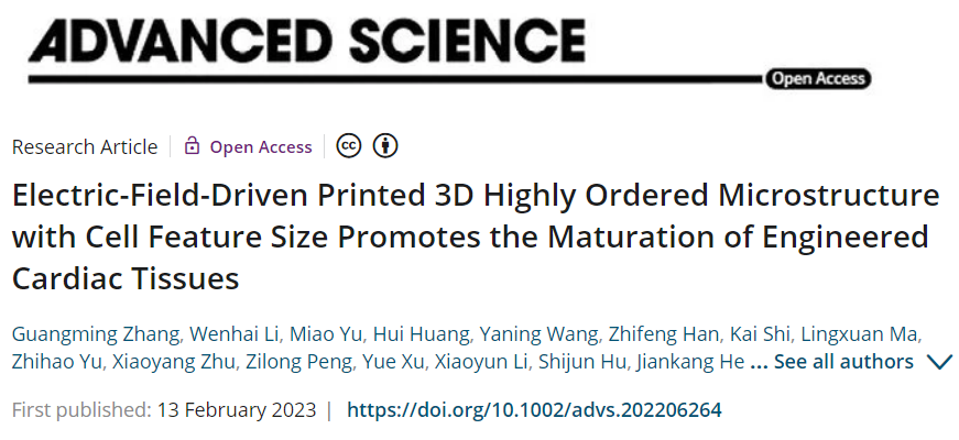 近日,机械与汽车工程学院山东省增材制造工程技术研究中心联合苏州大学心血管病研究所、西安交通大学、青岛大学附属医院等多家单位,在电场驱动喷射微3D打印组织工程支架方面取得重要进展,相关研究成果以“Electric-Field-Driven Printed 3D Highly Ordered Microstructure with Cell Feature Size Promotes the Maturation of Engineered Cardiac Tissues”为题,发表在国际高水平期刊《Advanced Science》(中科院大类一区, IF 17.521)。伟德官网张广明副教授和李汶海硕士为论文共同第一作者,兰红波教授为通讯作者,伟德国际1946bv官网为第一署名通讯单位。该成果具有典型的“医工结合”特色,也是伟德官网首次在该领域发表成果。