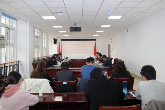 党政办公室主任钱均介绍了学校近两年规章制度废改立基本情况、本年度规范性文件立项计划以及学校制度体系构建现状。发展规划与学科建设处马鸿洋处长介绍了学校“十四五”规划在“完善内部治理体系”方面的总体目标和高水平大学建设的有关要求。