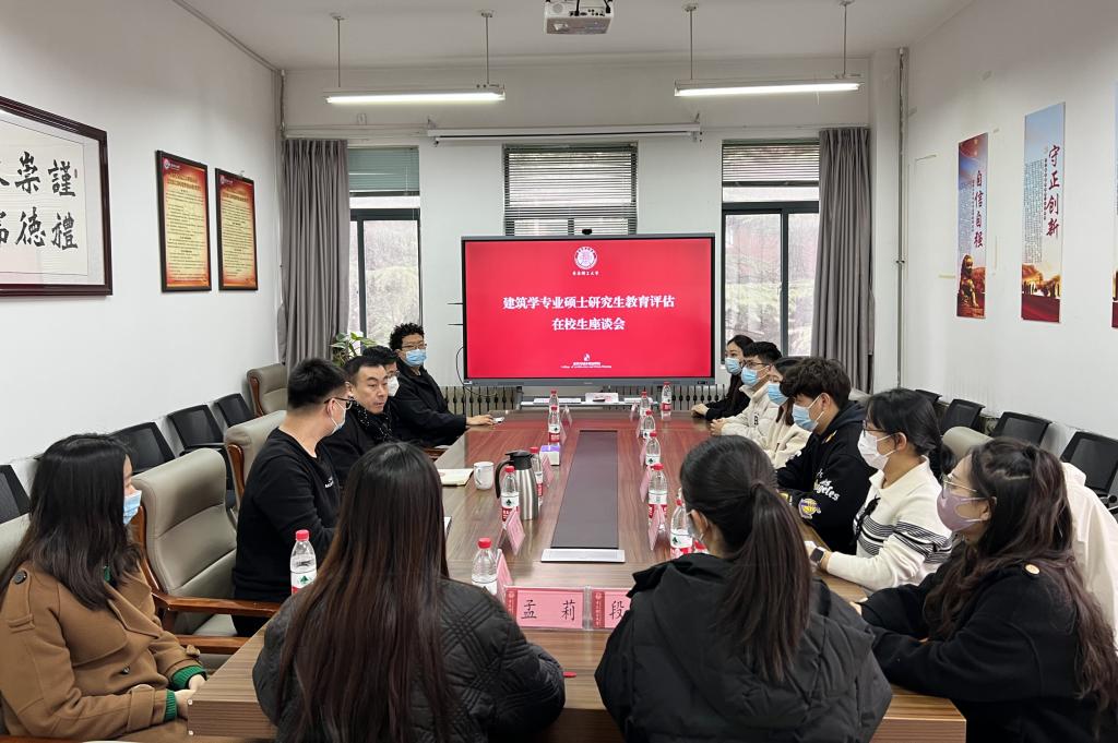 建筑与城乡规划学院院长许从宝作建筑学硕士学位研究生教育建设情况汇报,他从院系概况、培养条件、人才培养体系与建设、针对上轮评估意见的整改建设情况、未来建设思路五个方面向专家组进行了详细汇报。视察组成员就自评报告有关问题与学院以及职能部门进行了交流。