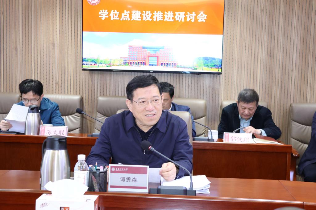 为稳步推进学校学位点建设工作,5月5日下午,学校在西海岸新区主校区召开学位点建设推进研讨会。党委副书记、校长谭秀森出席并主持会议,党委常委、副校长张凯,党委常委、副校长李长河出席会议,校学术委员会部分成员、发展规划与学科建设处、研究生院、教务处、科技处、机械与汽车工程学院、建筑与城乡规划学院、环境与市政工程学院、理学院、艺术与设计学院等学院院长、分管学科的副院长、院学术委员会主任参加会议。