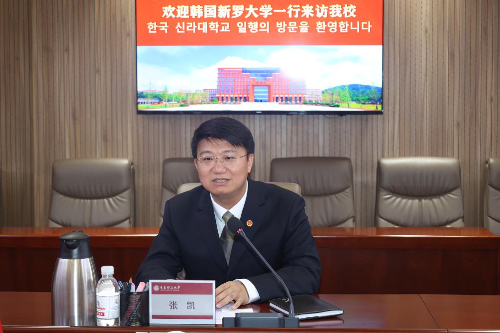 张凯代表学校向朴泰学一行的到来表示热烈的欢迎,并简要介绍了学校的基本情况、学科特色和近年来校区建设进展。张凯表示,中国和韩国是一衣带水的近邻,文化交流历史源远流长,青岛和釜山也互为友好城市,两校交流合作具有天然优势。希望日后双方能够在前期友好基础上,拓展更宽领域、更深层次的合作,努力发挥互补优势、推动资源共享、深化合作共赢。