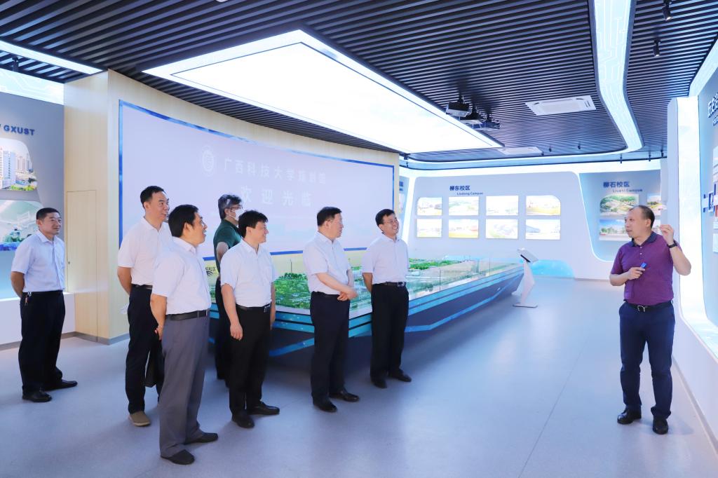 在广西科技大学,校党委书记赵君介绍了学校的基本情况,尤其是学校在依托柳州市重大产业,深化产教融合、校市融合,推进协同育人方面取得的成效。校长刘宝臣结合学校作为部省协同试点评估高校之一,进行新一轮本科教育教学审核评估的经历,分享了对评估理念、内涵、要求的认识和自评自建工作的体会。机械与汽车工程学院院长李健介绍了智能车辆(制造)与新能源汽车产业学院的建设情况,该产业学院入选国家首批产业学院。双方在教师交流、学生培养、教学科研等方面达成初步合作意向。调研组一行还实地考察了智能车辆(制造)与新能源汽车产业学院、学校规划馆。