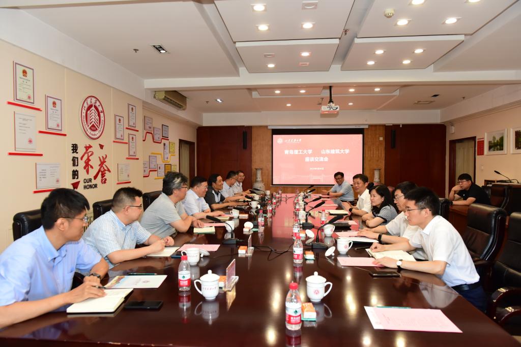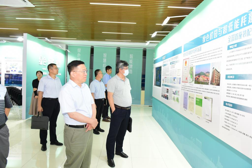 在山东建筑大学,校长于德湖介绍了学校学科建设、产教融合、服务地方社会经济发展等方面的经验做法,双方围绕科学研究和社会服务等展开交流讨论。调研组一行实地考察了被动式实验楼、木材工业国家工程研究中心、智慧城市展厅。